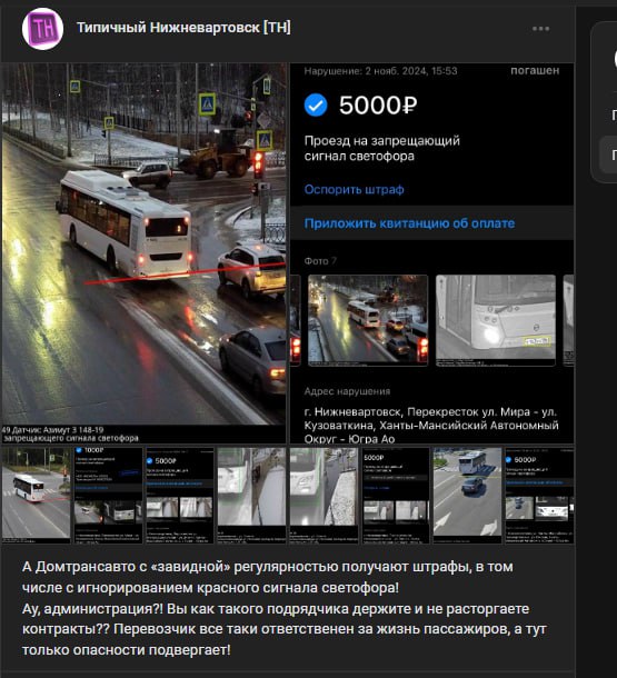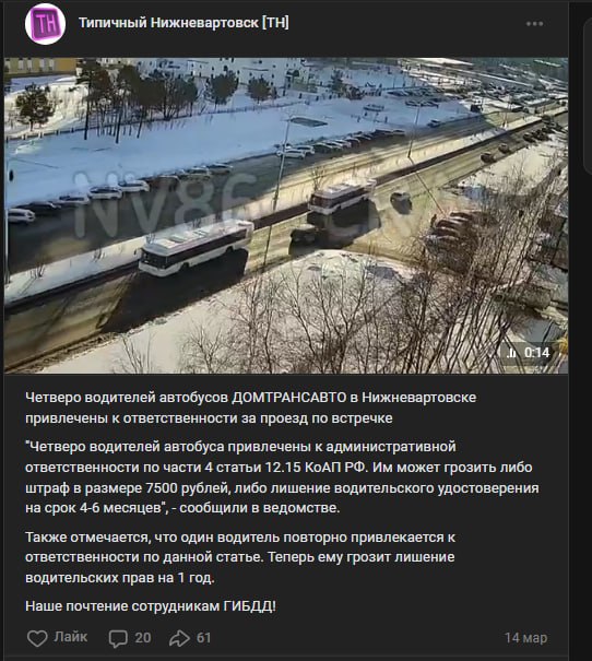 Так, 14 марта сообщество «Типичный Нижневартовск» сообщило, что четверо водителей «Домтрансавто» привлечены к ответственности за выезд на встречную полосу.