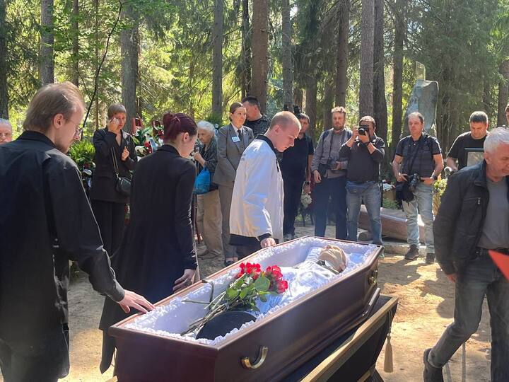 По информации «МК в Питере», родственники подержались за гроб, обошли его и присоединились к остальным пришедшим.