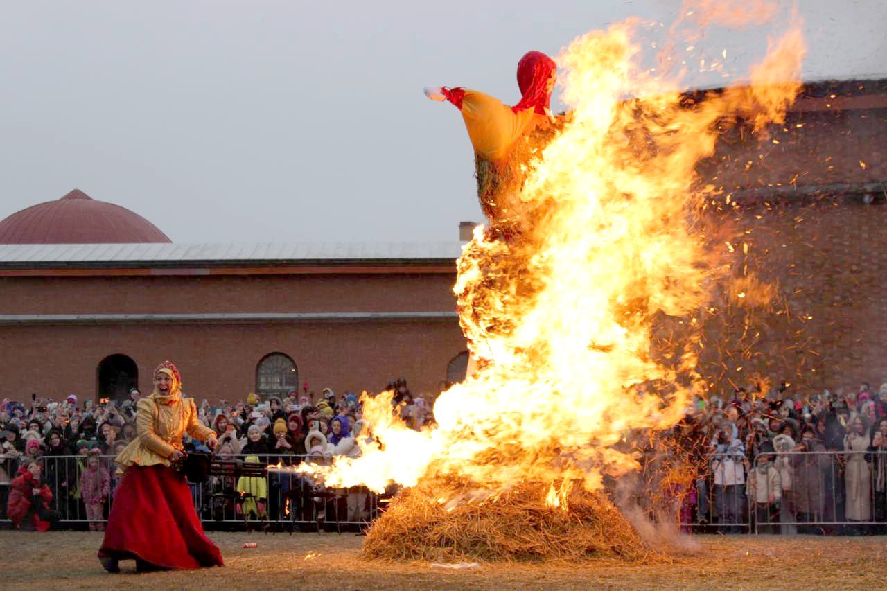 В программе — битва богатырей, славянские гадания и метание валенков. Завершится праздник традиционным сжиганием чучела и закликанием весны.
